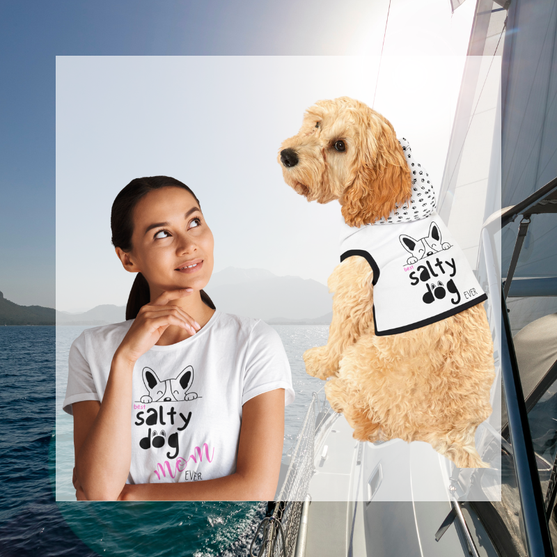 Designed for comfort and style, this matching shirt is perfect for proud dog moms who love the sea—and their 'salty dog' best friend. Perfect for days on the boat or relaxing shoreside!