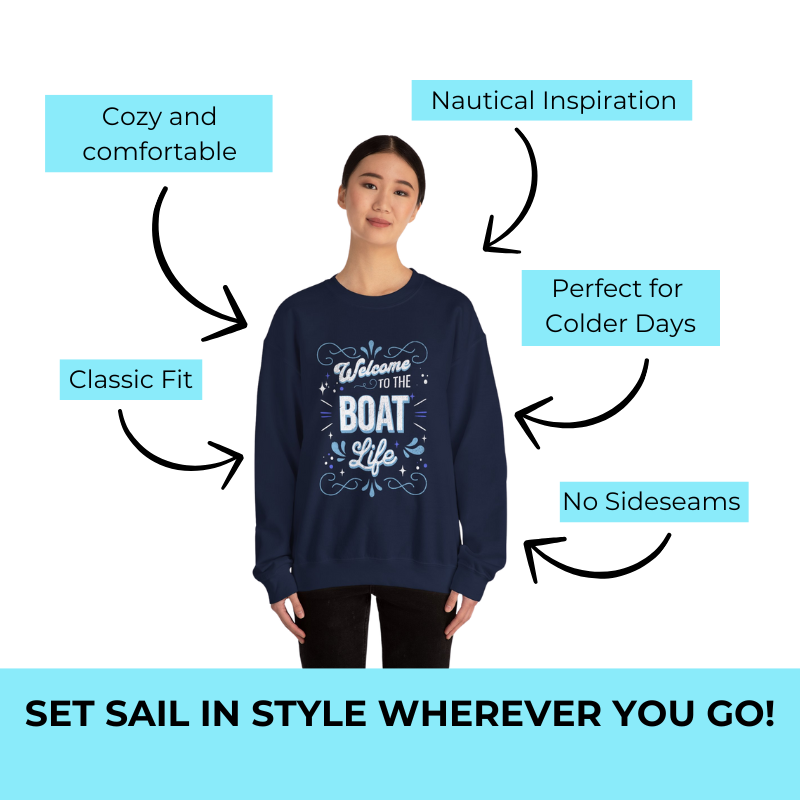 Embrace the boating lifestyle with our Welcome to the Boat Life sweatshirt.