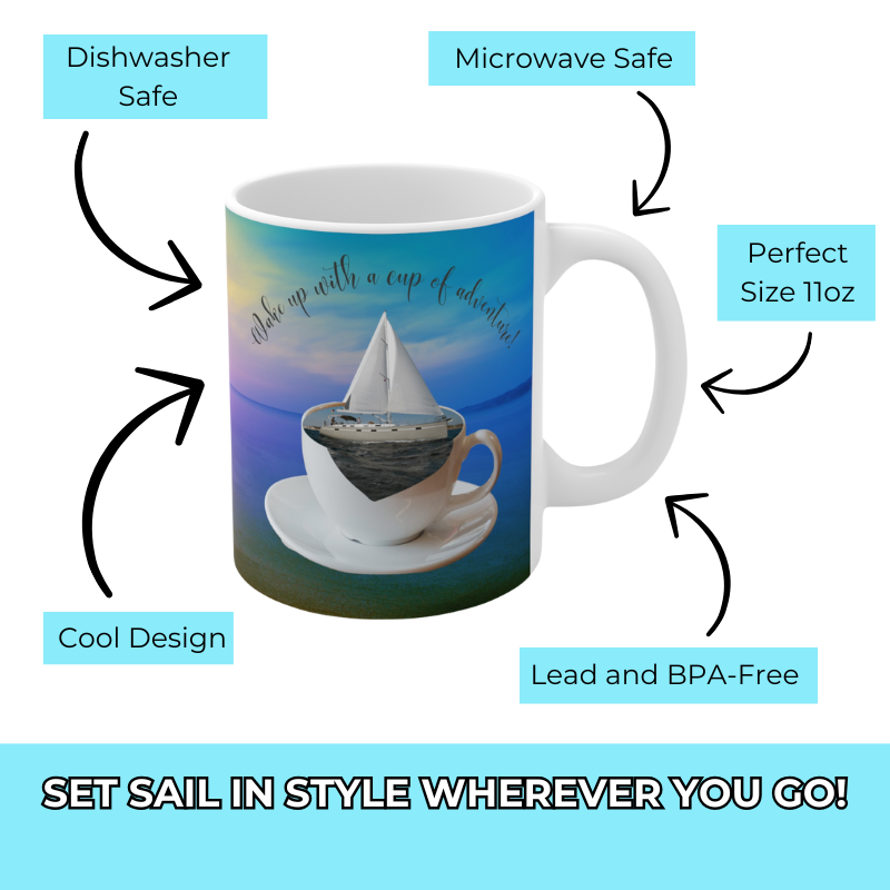 Featuring a playful design of a sailboat floating in a coffee cup, this mug is perfect for sailors and adventurers at heart. Whether you're gearing up for a day at sea or just need a boost at the office, this mug will inspire you to sail through any challenge with style.