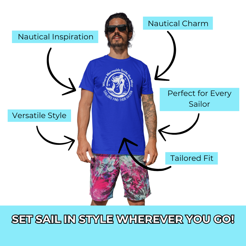 "Where Mermaids Guide the Way" T-Shirt – Embrace the allure of the open sea with a design that speaks to every sailor’s dream.