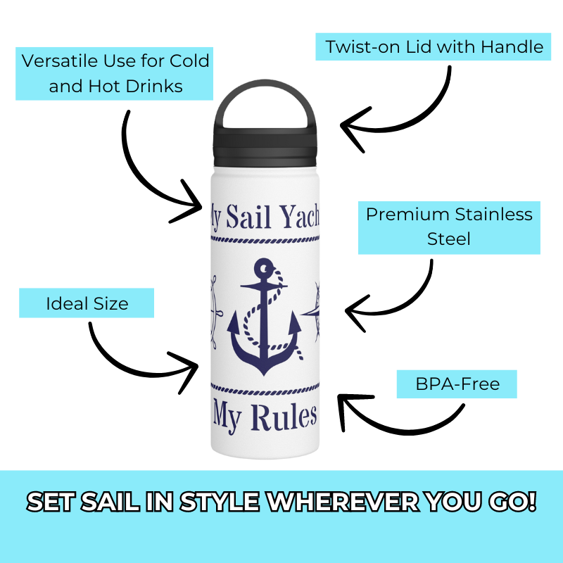 Stay hydrated with attitude with our "My Sail Yacht, My Rules" stainless steel water bottle.