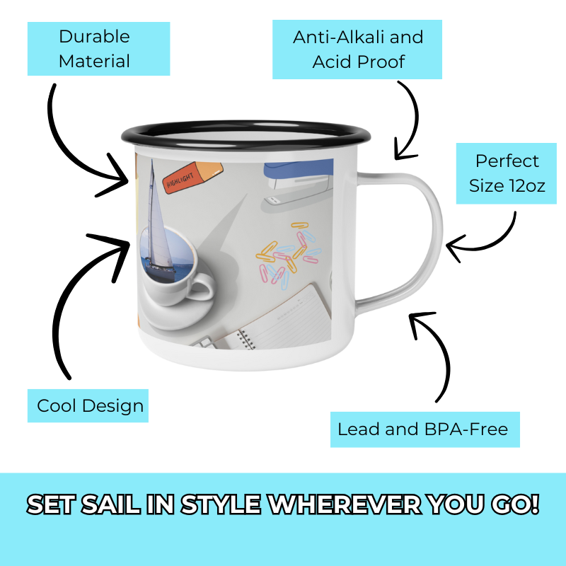 This enamel mug, crafted for durability, brings a touch of the open sea to your workspace, whether you’re cruising through emails or plotting your next adventure. Perfect for every sailor-at-heart, on or off the water!