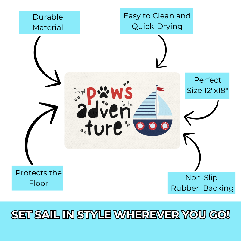 Our I've Got Paws for the Adventure feeding mat is crafted to keep your floors clean and dry, whether at home or onboard. With a durable, easy-to-clean surface and non-slip backing, it’s designed to stay in place through all the excitement.