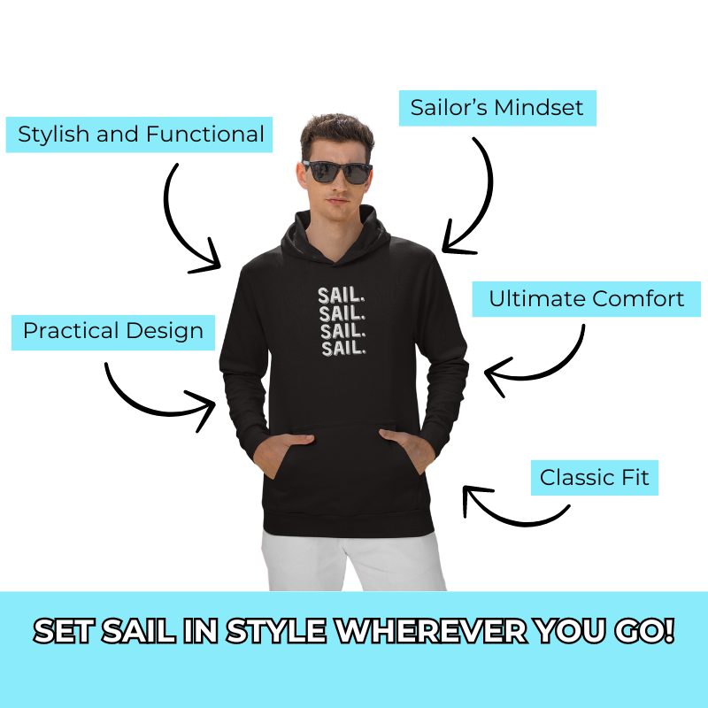 For those who eat, sleep, and breathe the open water, this hoodie is your perfect match. With its bold and repetitive "SAIL" design, it’s a statement piece for every sailor at heart.